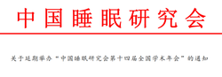 延期通知 | 关于延期举办“中国睡眠研究会第十四届全国学术年会”的通知