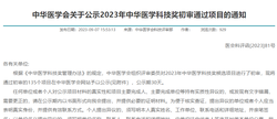 名单公示 | 中华医学会关于公示2023年中华医学科技奖初审通过项目的通知