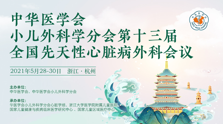 由中华医学会、中华医学会小儿外科学分会主办、中华医学会小儿外科学分会心脏学组、浙江大学医学院附属儿童医院、国家儿童健康与疾病临床医学研究中心 、国家儿童区域医疗中心承办的中华医学会第十三届全国先天性心脏病外科会议定于2021年5月28日-30日在杭州举行。本次会议正值浙江大学医学院附属儿童建院70周年、心脏外科建科40周年之际,以“传承、创新、合作、开放”为主题,拟邀请海内外知名学者与专家参会,将设置一个主会场及六个分会场进行专题报告,围绕先天性心脏病外科治疗、微创介入、体外循环、围术期重症监护、麻醉、影像等各领域进行学术交流及讨论,旨在加强多学科间合作,进一步提高全国先天性心脏病外科诊治技术和临床研究的水平,传播新进展、新热点、新成就。参会者获国家级继续教育学分。