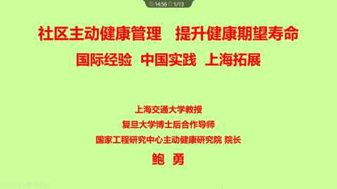 社区主动健康管理 提升健康期望寿命